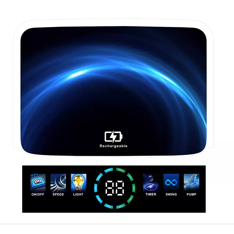 Ventilator za hlajenje zraka z izhlapevanjem, ki ga poganja sončna energija, čez dan vpija sončno svetlobo, da napolni svojo vgrajeno baterijo, zaradi česar je okolju prijazen in varčen. Z dolgotrajno baterijo zagotavlja 4–14 ur neprekinjenega hlajenja (odvisno od hitrosti ventilatorja), tako da lahko ves dan premagujete vročino brez "skrbi za napajanje".